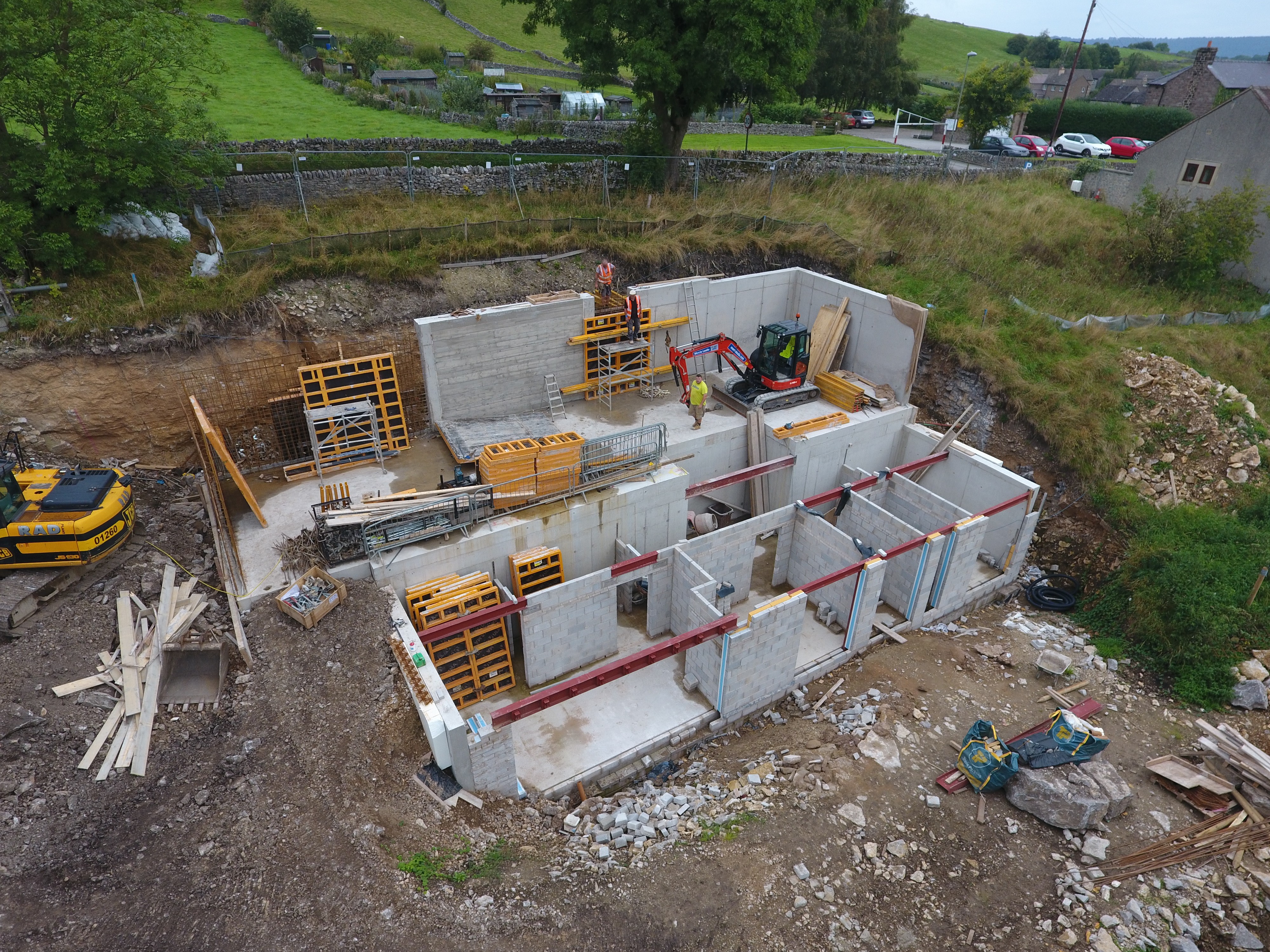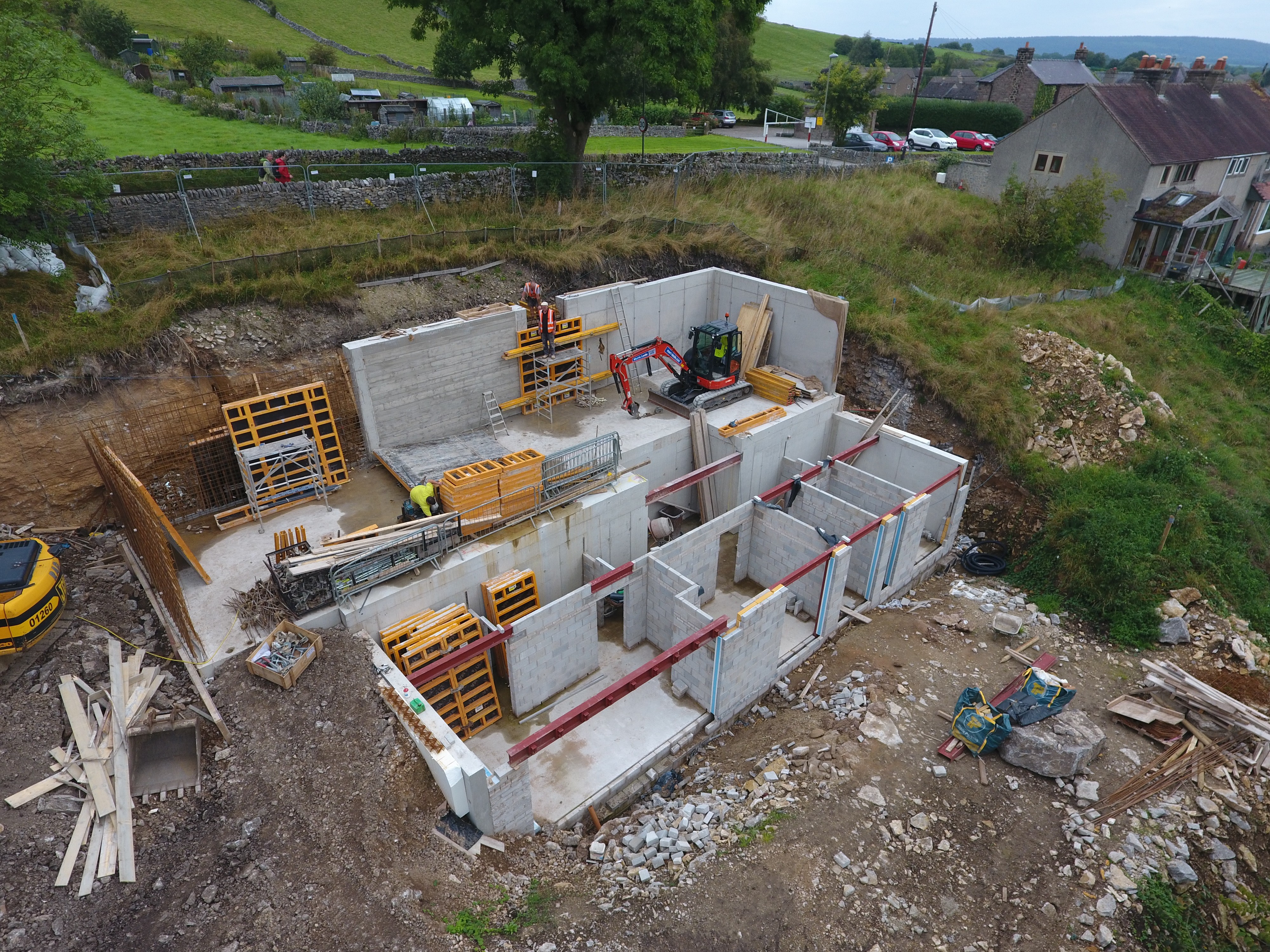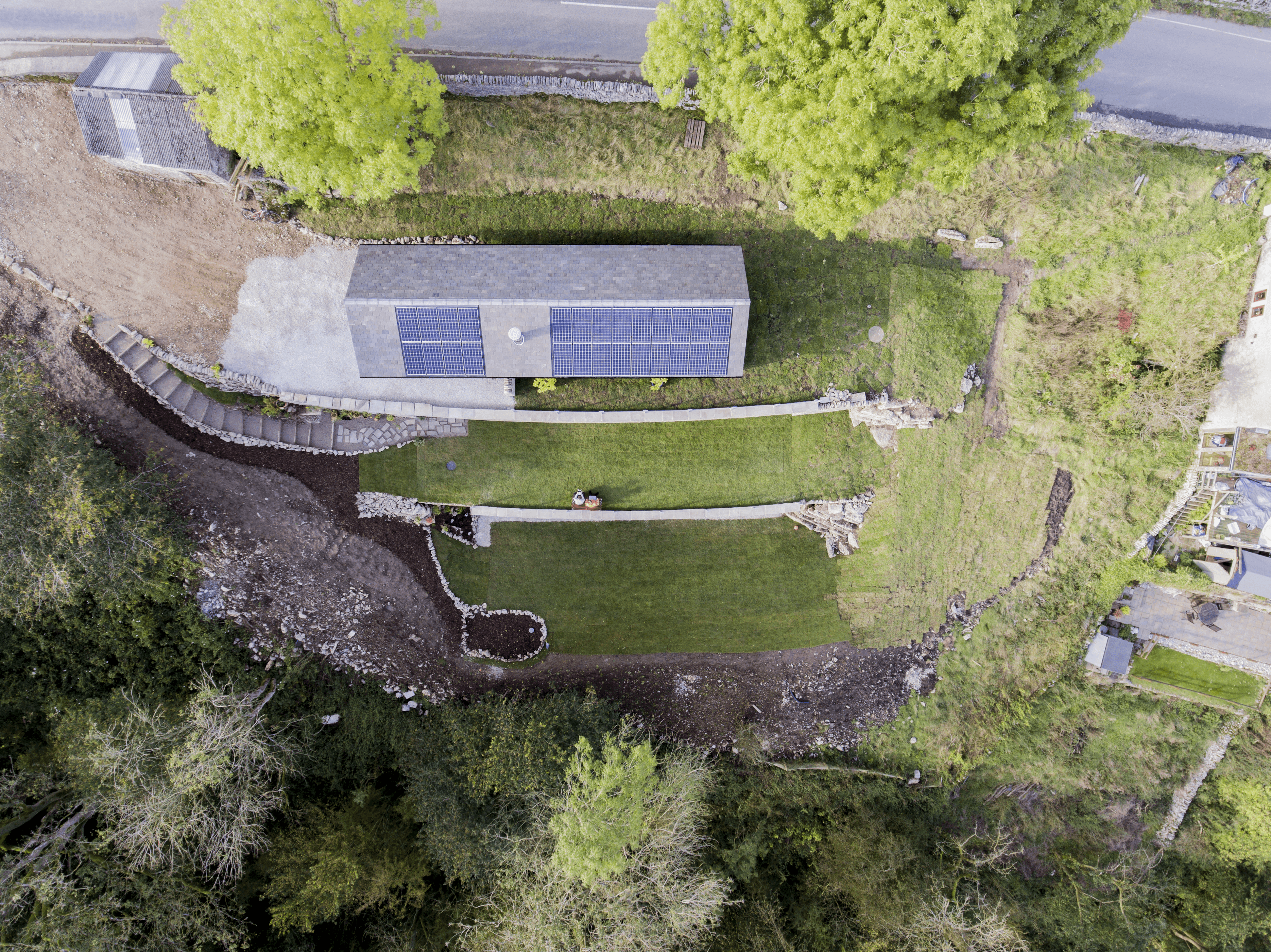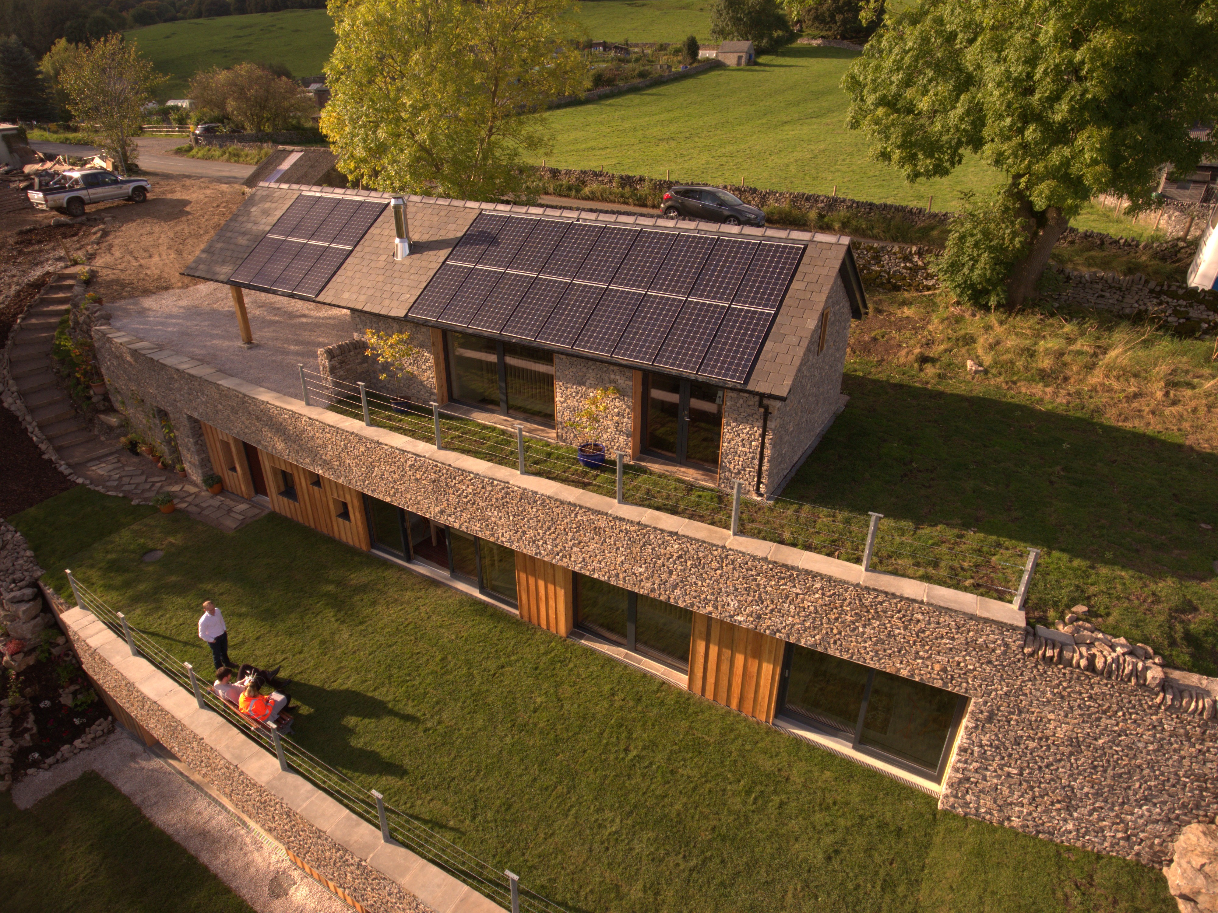The Subterranean Eco House is underpinned by a thorough sustainable design strategy. Heating is achieved through passive solar gain, removing the need for a traditional central heating system. Exposed thermal mass captures heat during the day and releases it gradually overnight, while a whole house mechanical ventilation system ensures a constant supply of fresh air with minimal heat loss, supporting both comfort and long term energy efficiency. The materials are limestone rubble for most external walls, glazing and timber cladding for the south facing walls and polished concrete floors.